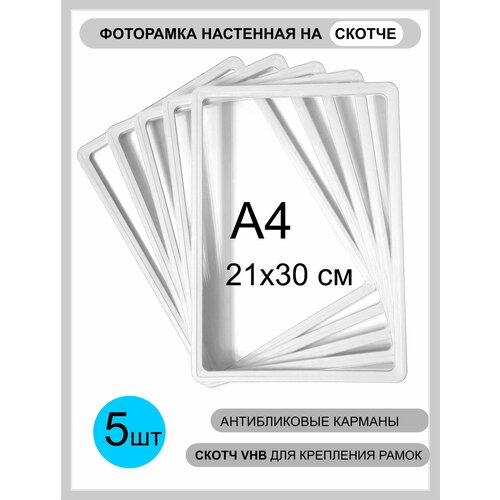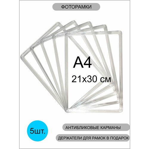 Фоторамка пластиковая 21х30 прозрачная настенная, комплект 5 шт , рамка для фото А4 , для фотографий, дпломов