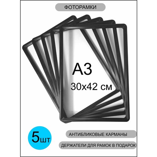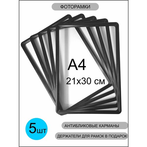 Фоторамка пластиковая 21х30 черная набор 5 шт , рамка для фото А4 , для фотографий, дипломов