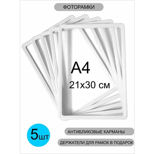 Фоторамка пластиковая 21х30 белая комплект 5 шт , рамка для фото А4 , для фотографий