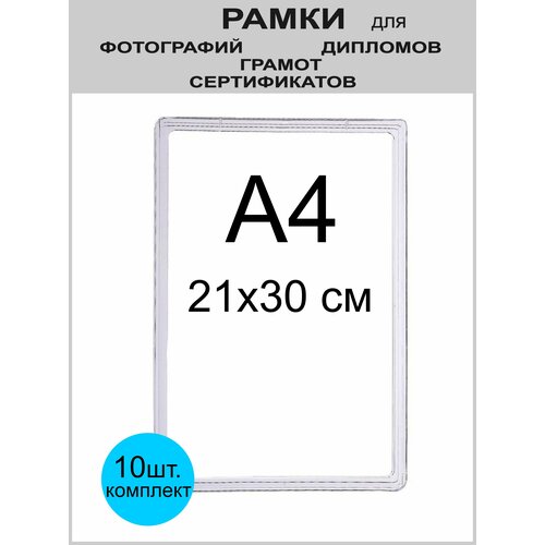 Фоторамка 21х30 прозрачная комплект 10 шт, информационная рамка А4 для фото, дипломов, сертификатов, держатель А4