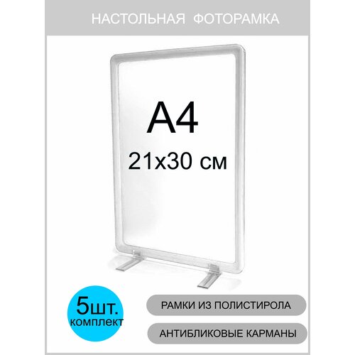 Фоторамка 21х30 белая настольная вертикальная комплект набор 5 шт, рамка для фото А4, фотографий 20х30, грамот, сертификатов, дипломов коллаж на стол