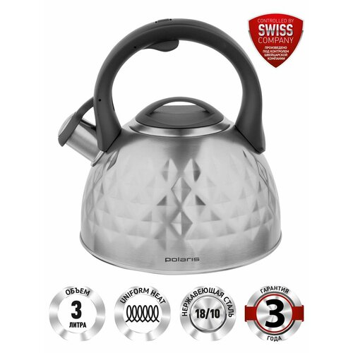 Polaris Чайник со свистком Alicante-3LN, 3 л, 3 л, серебристый