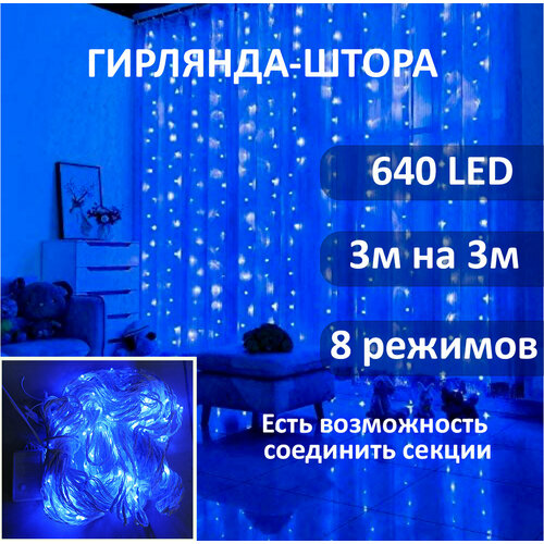 Гирлянда "Занавес-штора" синяя, 3 х 3 метра 640 LED