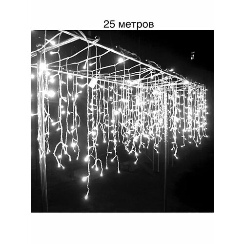 Гирлянда уличная бахрома 12 метров, гирлянда новогодняя цвет свечения теплый желый