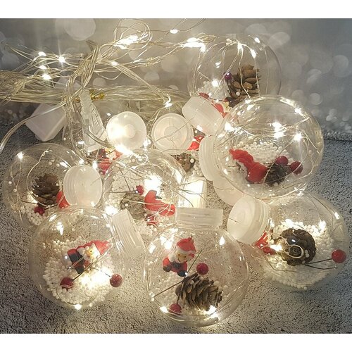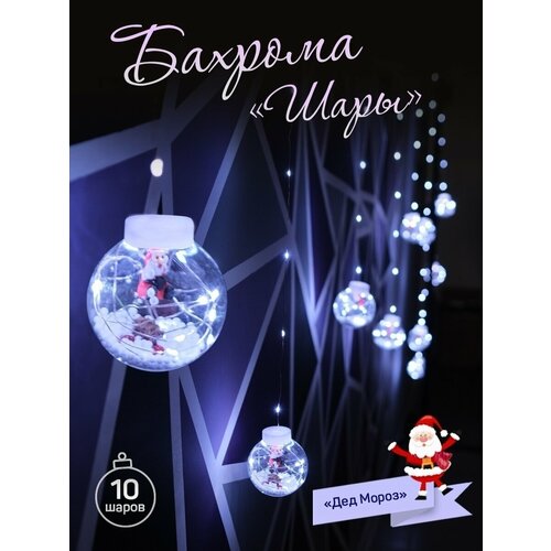 Гирлянда электрическая Новый год 2024 Шарики прозрачные с Дед Морозом /Светодиодная/10 шариков/3метра/Занавес/Штора/8 режимов/Белая