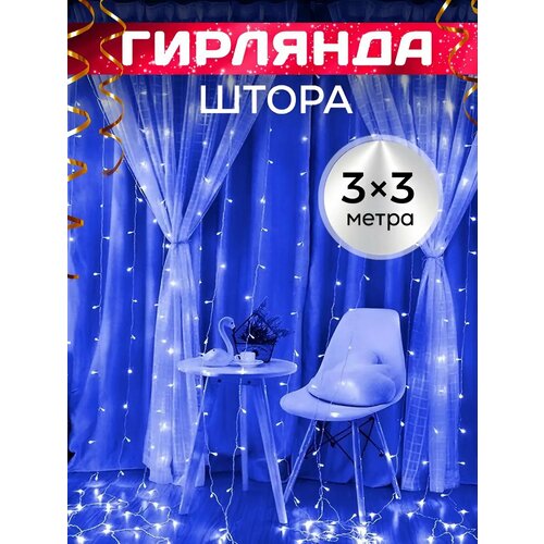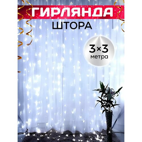 Гирлянда электрическая интерьерная 3х2 метра, Cветодиодная гирлянда штора на Новый год, Занавес, Электрогирлянда, Холодный