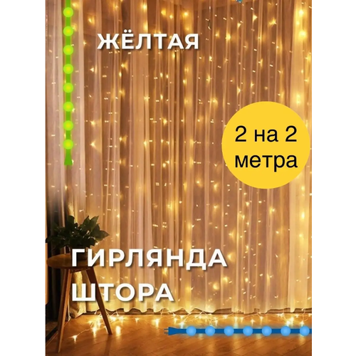 Гирлянда светодиодная Штора Занавес 2х2 м золотой, теплый белый светлый, желтый