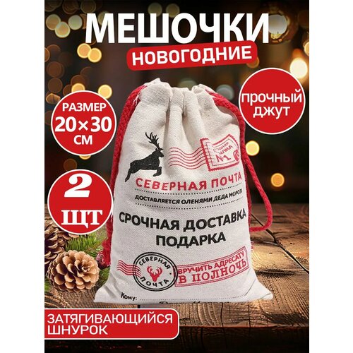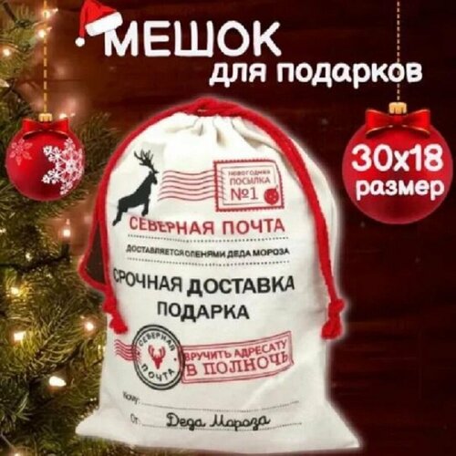 Мешок подарочный на Новый год, Мешок новогодний для подарков от деда мороза Северная Почта, 30x20см
