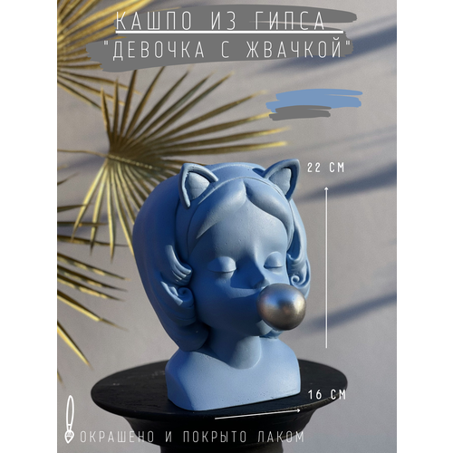 Кашпо Девочка с жвачкой из гипса в голубом цвете, 22 см, органайзер ваза
