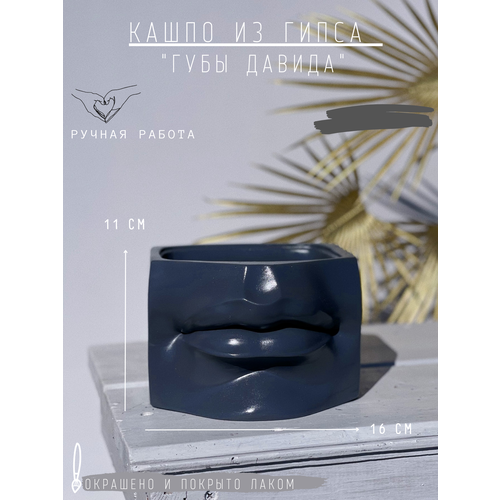 Гипсовое кашпо "Губы Давида"(широкие) органайзер в сером цвете, 11 см