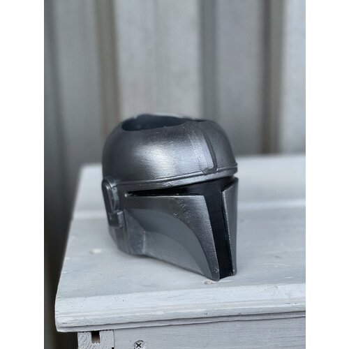 Кашпо из гипса Мандалорец, 10 см, органайзер статуэтка, серебристо-черный