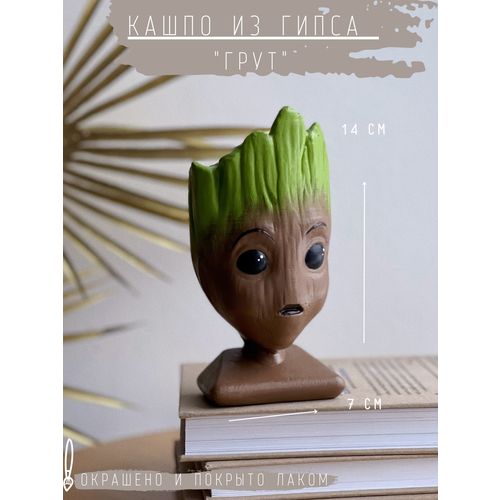Кашпо из гипса «Грут», 14 см, коричнево-зеленый / органайзер / статуэтка