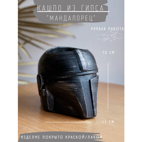 Кашпо из гипса Мандалорец, 10 см, органайзер статуэтка, серебристо-черный