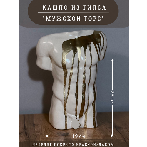 Кашпо из гипса Мужской торс, 25 см, белый/золотой, ваза, органайзер