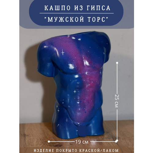 Кашпо из гипса Мужской торс, 25 см, фуксия/золотой, ваза, органайзер