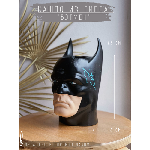 Кашпо/горшок из гипса - Бэтмен в черном цвете с дизайном, 25 см.