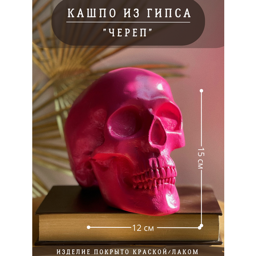 Кашпо из гипса Череп анатомический в розовом цвете, 15 см, органайзер