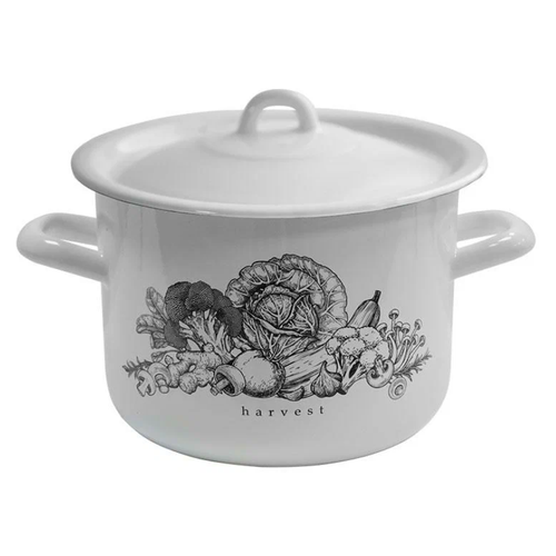 Кастрюля эмалированная Лысьвенские эмали Harvest с крышкой белая 6л / для всех видов плит
