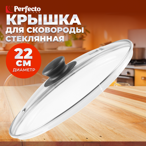 Крышка стеклянная, 220 мм, с металлическим ободом, круглая, PERFECTO LINEA (Стеклянная крышка на сковороду диаметром 22 см с паровыпуском изготовлена