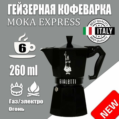 Гейзерная кофеварка Bialetti Moka Express (6 чашек), 270 мл0.27 л, черный