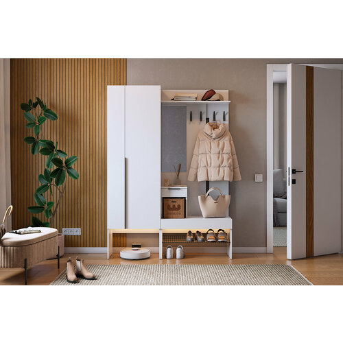 Узкая модульная прихожая "Баско К2", цвет Белое дерево, 140*35*195 см, Mebelson