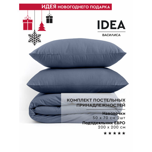 Постельное белье Евро Василиса IDEA, Перкаль, хлопок 100%, пододеяльник 200x200 см, наволочки 50x70 см, Кварц