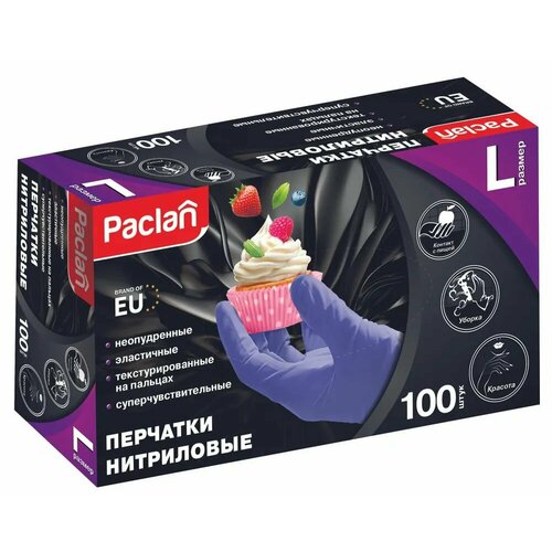 Paclan Перчатки нитриловые фиолетовые, размер L, 100 шт
