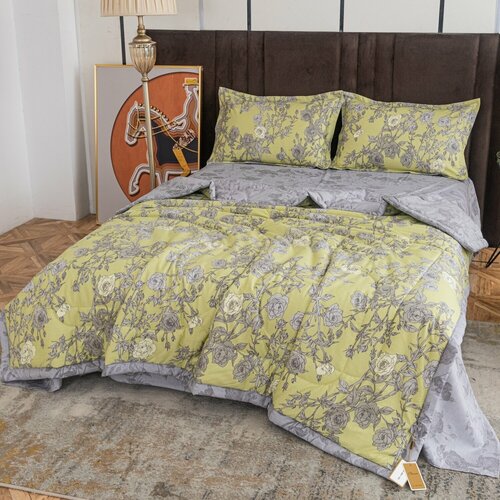 Комплект постельного белья Сатин с Одеялом 100% хлопок на резинке OBR121 (Евро / 50-70 2 шт / 160*200*25)