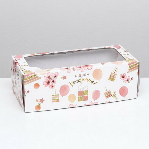 Коробка самосборная, с окном, "С Днём Рождения!" 16 x 35 x 12 см, 5 шт.