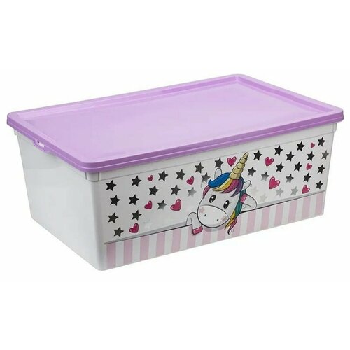 Ящик для хранения Idea / Идея Деко, из полипропилена, с единорогом, 14x37x25см, 10л / органайзер для вещей