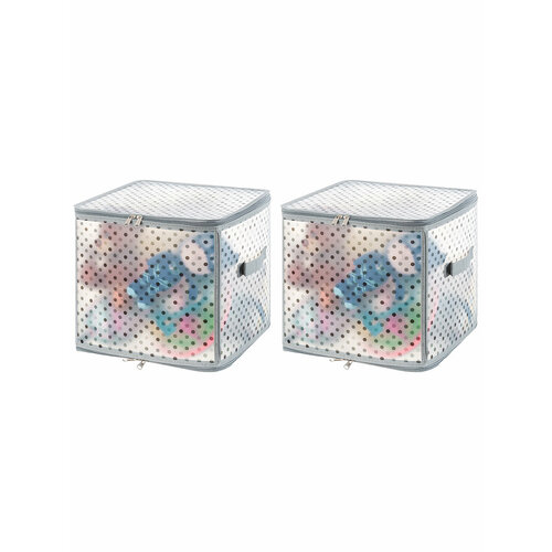 Кофр складной / органайзер / коробка для хранения вещей 2 шт 30х30х30 см EL Casa Горошек на серебре с молнией, пластиковый, набор