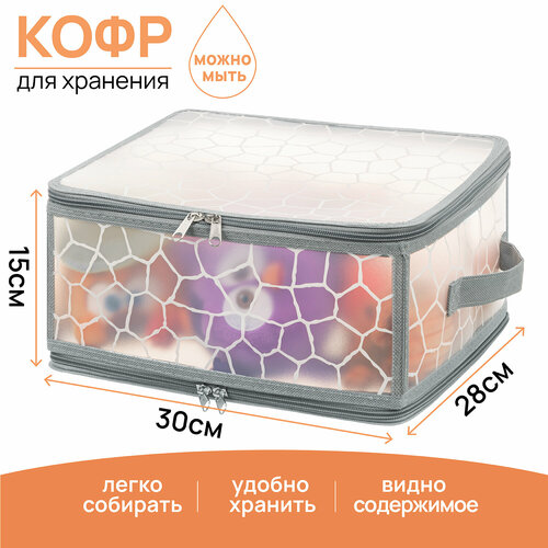 Кофр складной, органайзер, коробка для хранения вещей 30х28х15 см EL Casa Соты, с крышкой на молнии