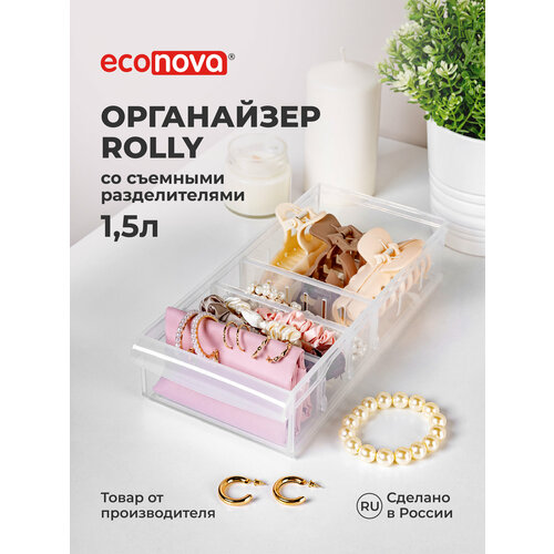Органайзер для хранения косметики, канцелярии, белья, вещей 1,5 л пластиковый, контейнер с перегородками, без крышки, прозрачныйКоробка для хранения