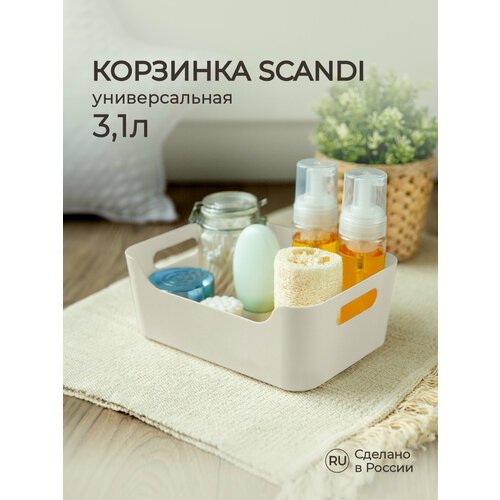 Корзинка с ручками Scandi поможет хранить полезные мелочи всегда на своих местах: документы, ключи, бижутерию, косметику, пульты, канцелярские товары, маленькие предметы одежды, аксессуары для кухни. Благодаря боковым ручкам корзинки удобно переносить или снимать с полки. Выемка в передней части позволяет видеть, что именно хранится в корзинке и обеспечивает удобный доступ к её содержимому. Корзинка со скруглёнными углами и глянцевой поверхностью легко моется или протирается влажной тканью.