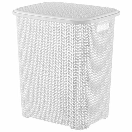 Корзина для белья EL CASA "Вязь" (модель 2060/06) с крышкой, белая, 60 л