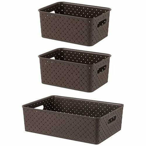 Корзинка, коробка для хранения, 3 шт Береста 7,5 л 35х24,5х10,5 см EL Casa, цвет мокка, набор