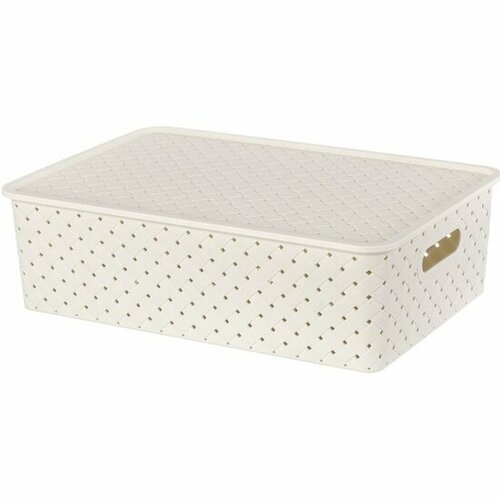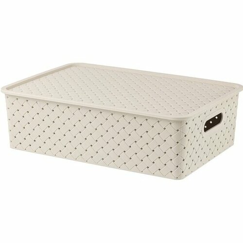 Корзинка с крышкой EL CASA "Береста" (модель 5221/26) слоновая кость, 35х24.5х10,5 см, 7.5 л