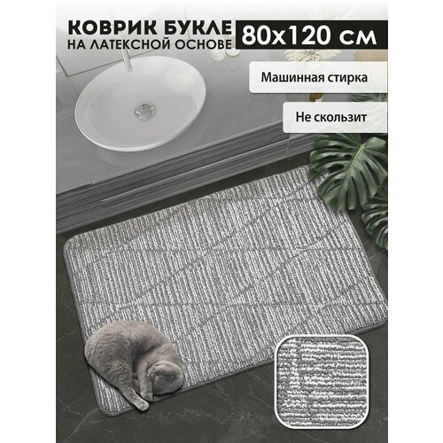 Коврик прикроватный в спальню Icarpet букле Кристалл 80х120 пепельно-серый, коврик в ванную антискользящий