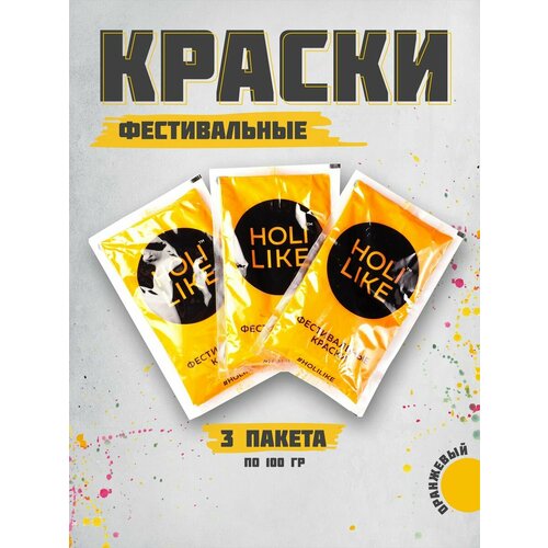 Holi Like Краски холи для фестивалей и праздников Набор из 3х пакетов оранжевой 300 г