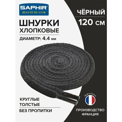 Шнурки Saphir хлопковые круглые толстые без пропитки 120 см, диаметр 4,4 мм, 01