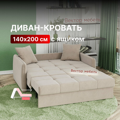 Диван-кровать раскладной Прямой, Аккордеон, ортопедический, 140х200 спальное место, Стелла, велюр бежевый