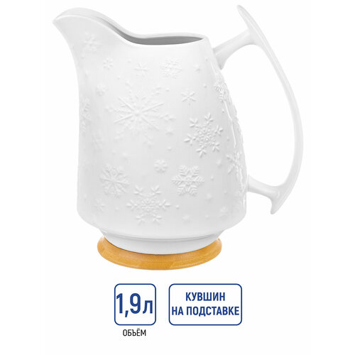 Кувшин 1,9 л 20х14,5х22 см Elan Gallery Снежинки фарфоровый для воды на деревянной подставке без крышки