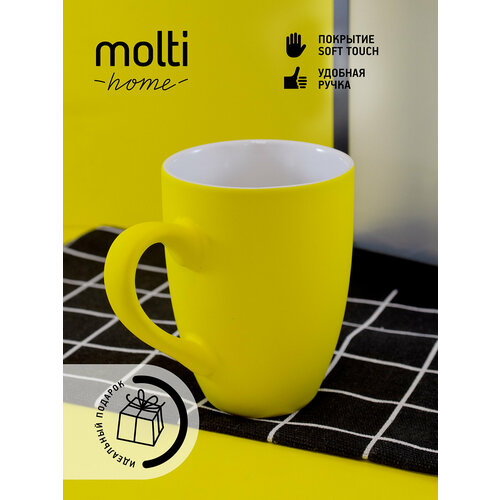 Кружка матовая для чая и кофе molti Bright Tulip двухцветная чашка подарочная 340 мл, красная с желтым