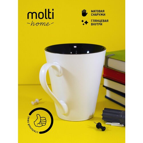Кружка для чая и кофе New Bell чашка подарочная 330 мл, матовая, белая с черным