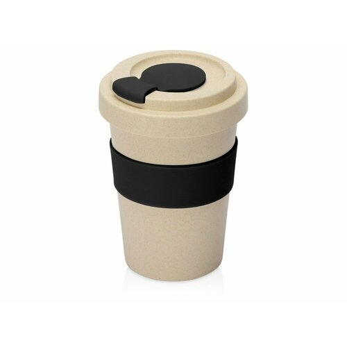 Стакан из пшеничного волокна «Flava» с силиконовой манжетой и клапаном на крышке, цвет бежевый/черный