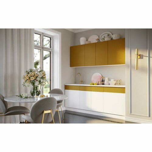 Кухонный гарнитур Престиж 2000, Белый глянец/ Горчица софт МДФ 9329724