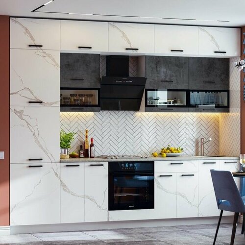 Кухонный гарнитур 3х уровневый 3000 Техно, Мрамор/Бетон графит