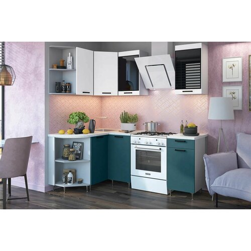 Кухонный гарнитур Техно 1.3х1,4м компоновка №3 Белый снег софт/Атлантик софт (Антарес)