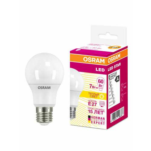 Лампа светодиод. (LED) Груша Е27 7Вт 600лм 2700К 230В матов. Osram
