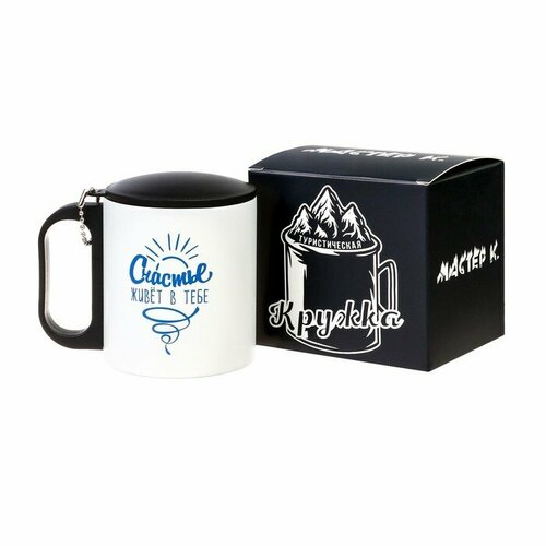 Мастер К Термокружка, серия: Горы, "Мастер К. Лучший охотник", складная ручка, 270 мл, 7 х 7.5 см